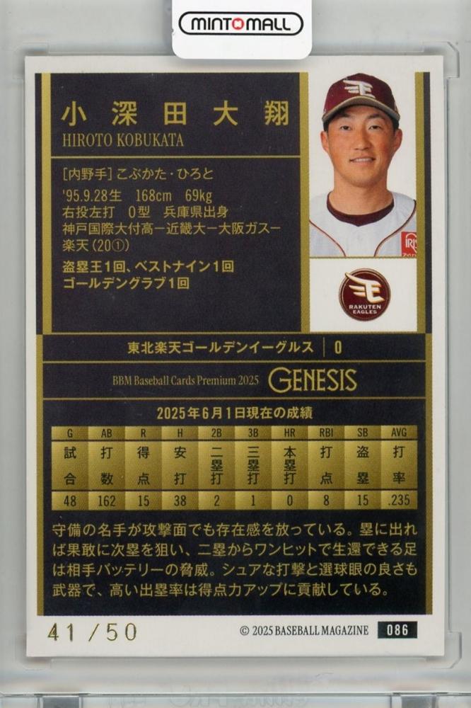 2025 BBM GENESIS 小深田大翔 オレンジ箔【41/50】 東北楽天ゴールデンイーグルス