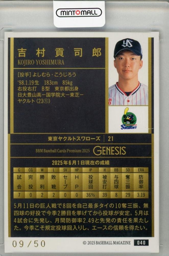 2025 BBM GENESIS 吉村貢司郎 オレンジ箔【09/50】 東京ヤクルトスワローズ