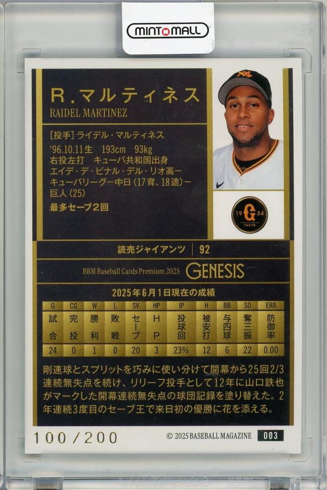 2025 BBM GENESIS ライデル・マルティネス エメラルド箔【100/200】 読売ジャイアンツ