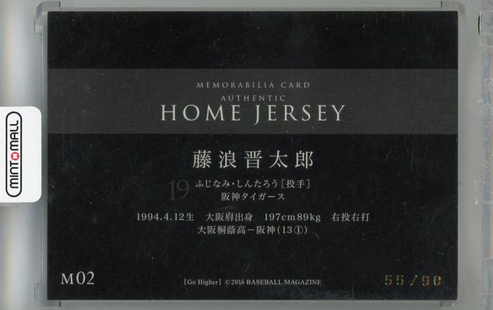 2016 BBM Go Higher 藤浪晋太郎 メモラビリアカード ホームジャージー【55/90】 阪神タイガース