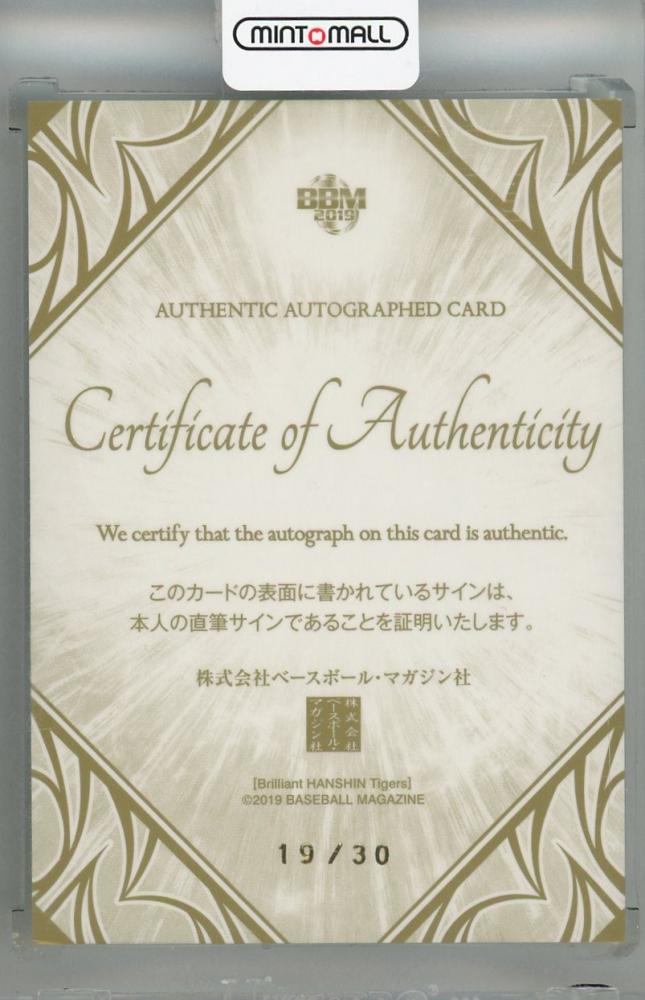 2019 BBM 阪神タイガース Brilliant 藤浪晋太郎 直筆サインカード(裏面角傷有り)【19/30(ジャージナンバー!)】