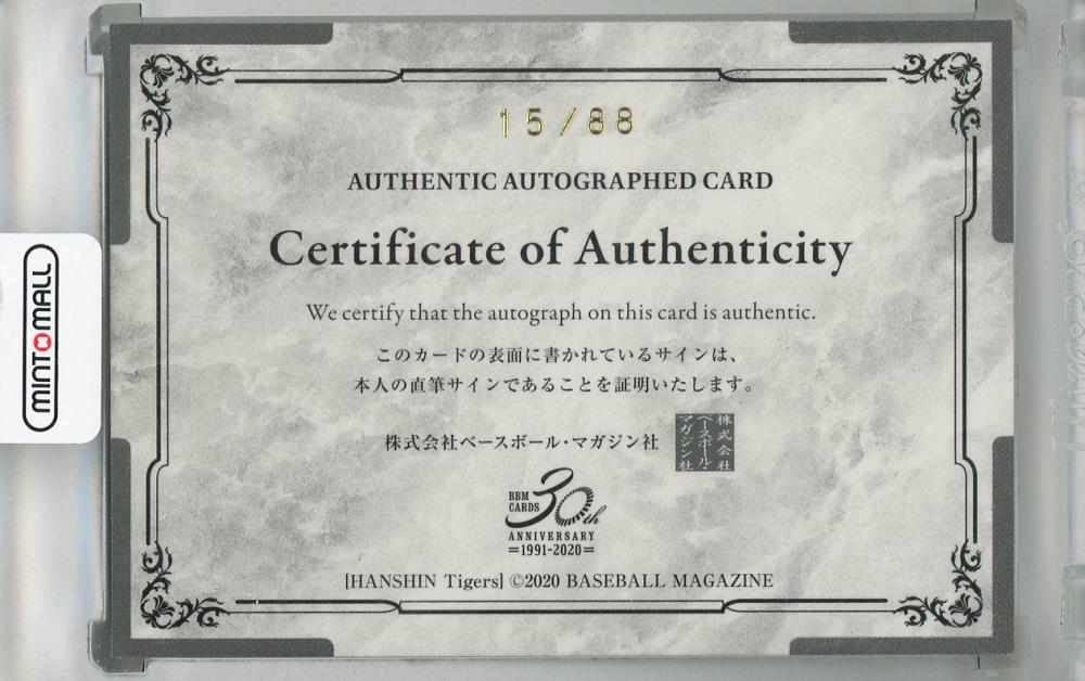 2020 BBM 阪神タイガース 藤浪晋太郎 直筆サインカード【15/88】