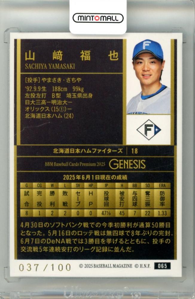 2025 BBM GENESIS 山﨑福也 #065 レギュラーパラレル コバルトブルー箔版【037/100】 日本ハム