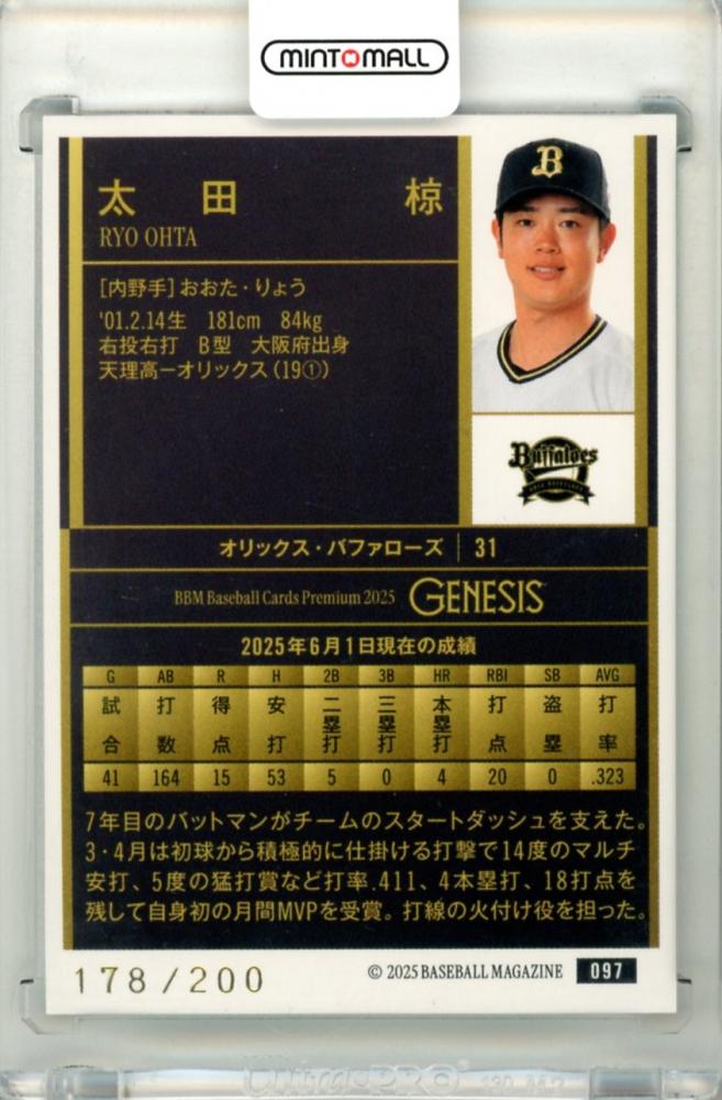 2025 BBM GENESIS 太田椋 #097 レギュラーパラレル エメラルド箔版【178/200】 オリックス