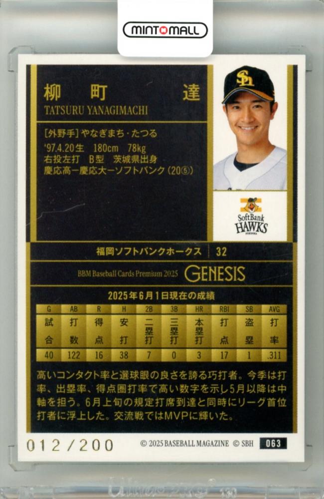 2025 BBM GENESIS 柳町達 #063 レギュラーパラレル エメラルド箔版【012/200】 ソフトバンク