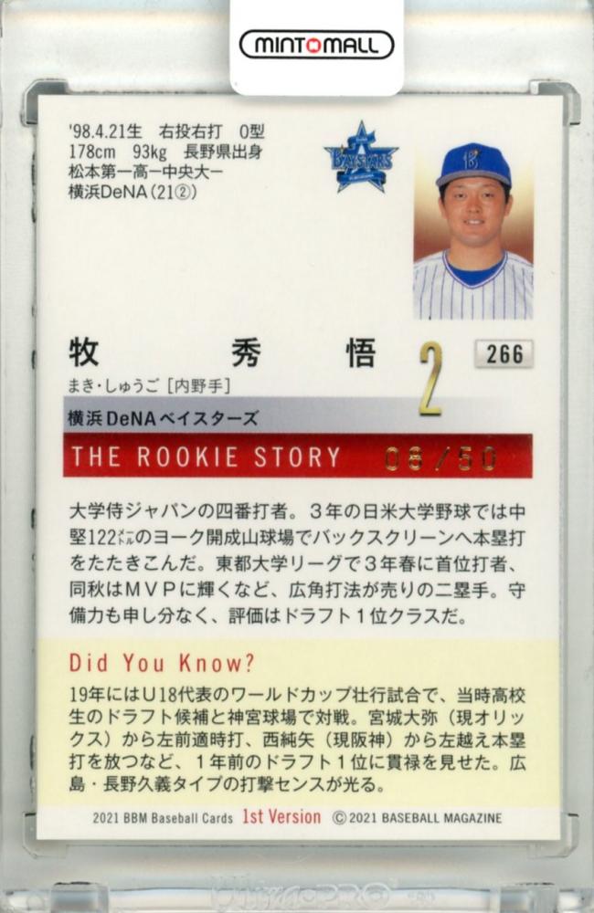 2021 BBM ベースボールカード 1STバージョン 牧秀悟 #266 ホロ箔サインカード【08/50】 横浜