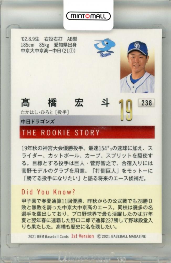 2021 BBM ベースボールカード 1STバージョン 髙橋宏斗 #238 銀箔サインカード 中日
