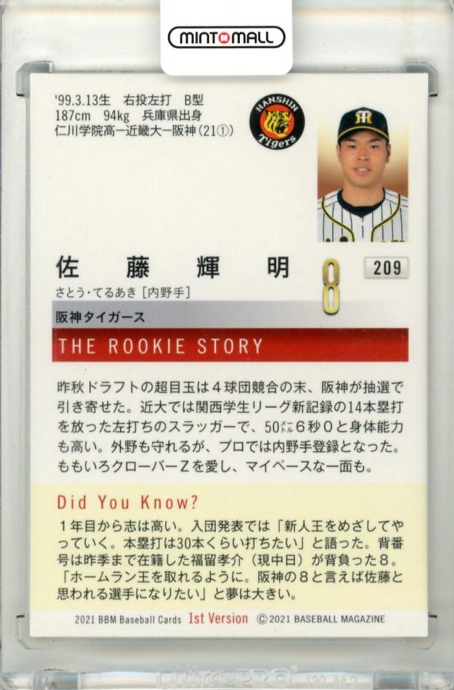 2021 BBM ベースボールカード 1STバージョン 佐藤輝明 #209 銀箔サインカード 阪神
