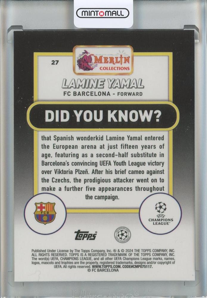 2023-24 Merlin UEFA Club Competitions Lamine Yamal RC #27 FC Barcelona