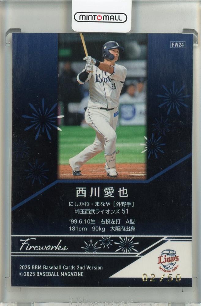 2025 BBM 2ndバージョン 西川愛也 Fireworks オレンジ箔版【02/50】 埼玉西武ライオンズ