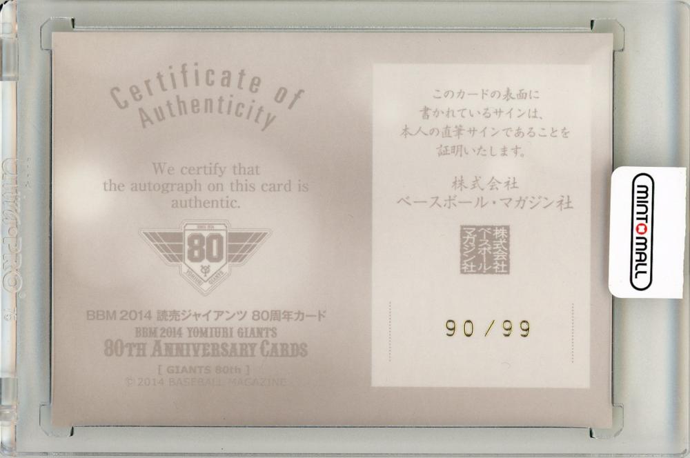 2014 BBM 読売ジャイアンツ80周年 中村 稔 直筆サインカード【90/99】 読売ジャイアンツ