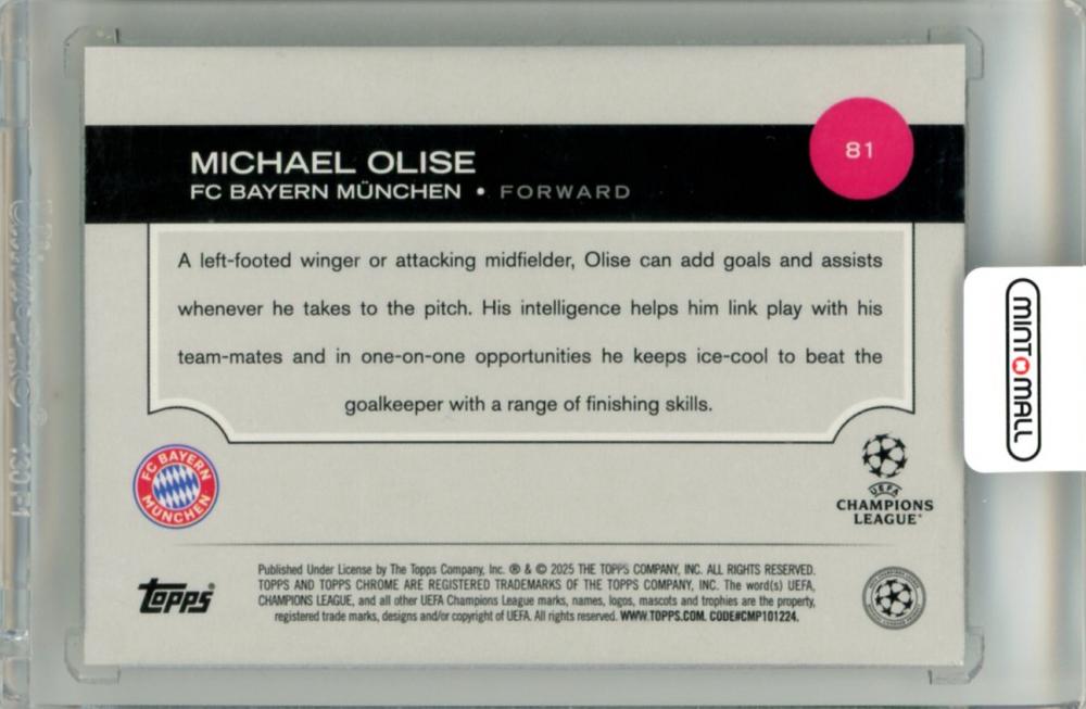 2024-25 Topps Chrome UEFA Club Competitions Michael Olise #81 Base Green Lava Refractor Parallel【74/99】 FC Bayern Munchen