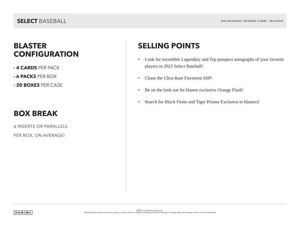 予約◆MLB 2025 PANINI SELECT BLASTER