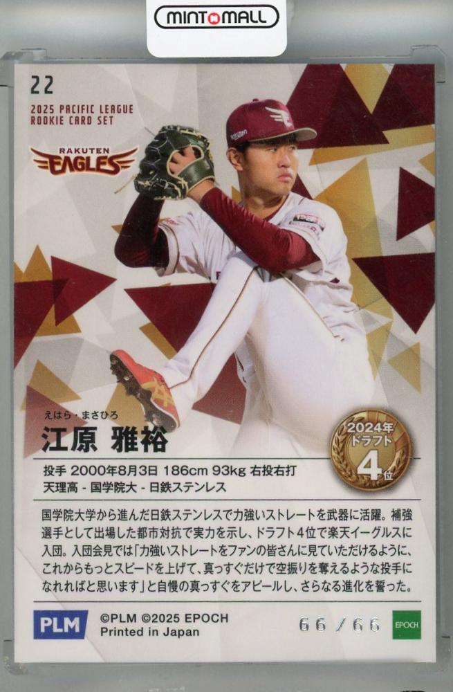 2025 EPOCH パシフィック・リーグ ルーキー 江原雅裕 レギュラーパラレル シルバー【66/66(Lastナンバー!)】 東北楽天ゴールデンイーグルス