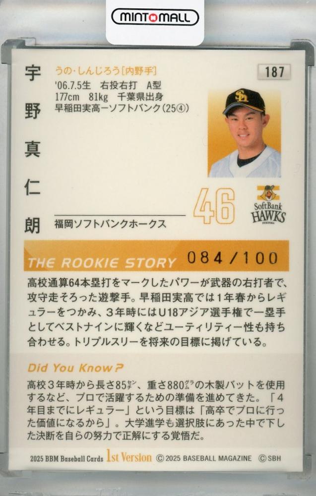 2025 BBM 1stバージョン 宇野真仁朗 銀紙版 (RC) #187【201/300】 福岡ソフトバンクホークス
