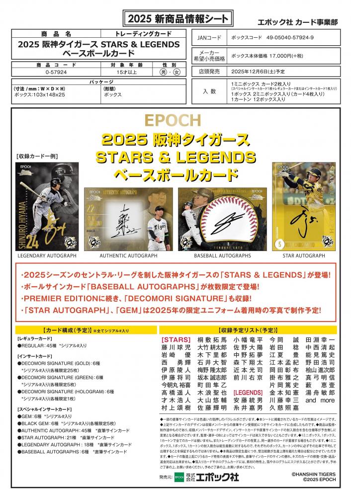 予約◆EPOCH 2025 阪神タイガース STARS & LEGENDS ベースボールカード