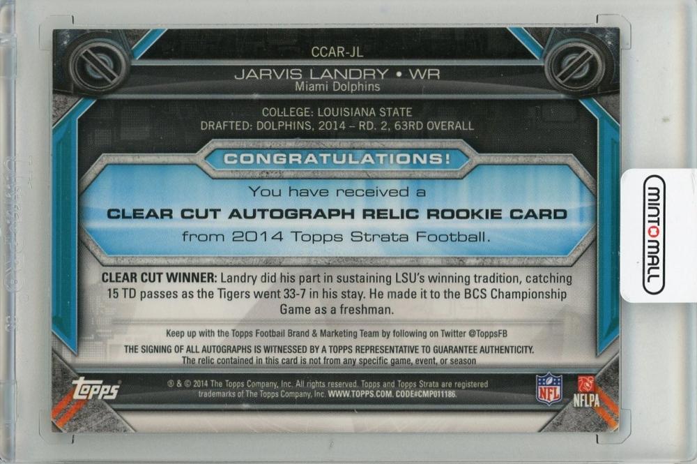 2014 TOPPS Strata Clear Cut Jarvis Landry Rookie Relic Autographs Sapphire #CCARJL【Last No. 75/75】 Miami Dolphins
