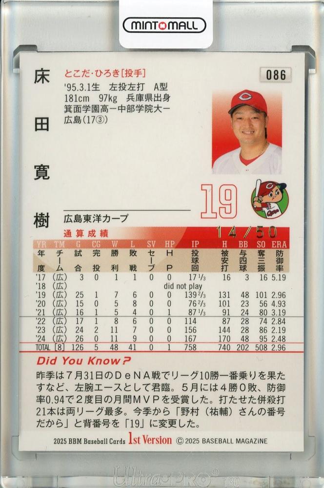 2025 BBM 1st バージョン 床田寛樹 ホロ箔サイン版【14/50】 広島東洋カープ