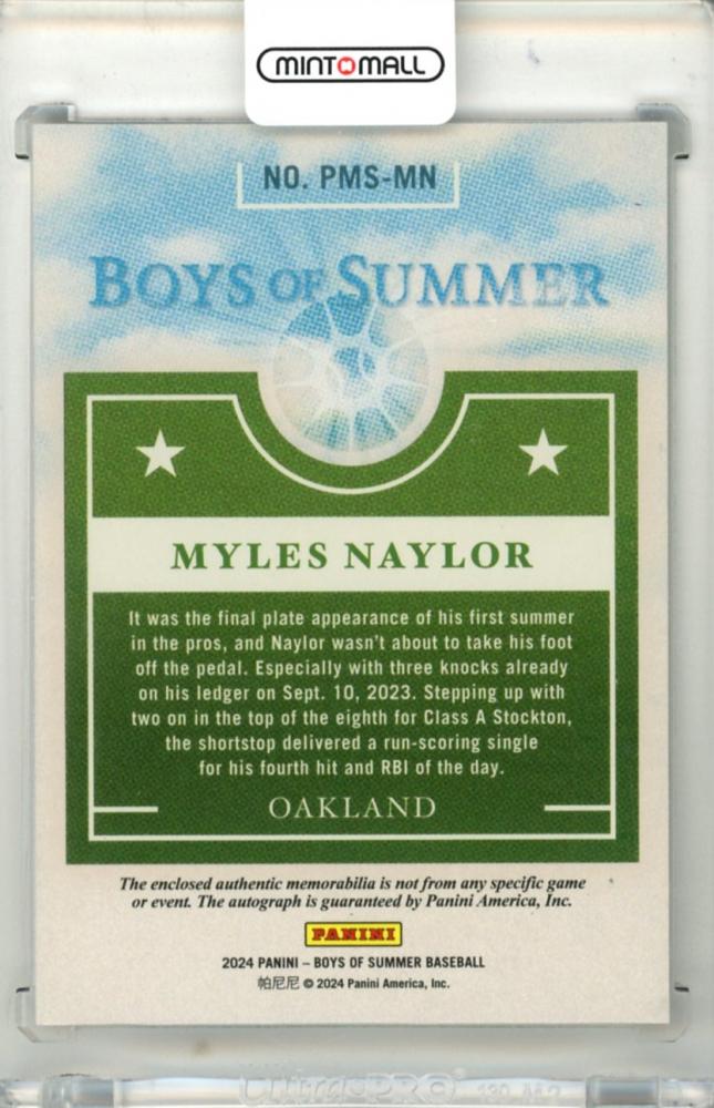 2024 Panini Boys Of Summer Myles Naylor #PMS-MN Prospect Material Signature Red Parallel【06/49】 Athletics