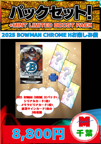 【海外ベースボールお楽しみ袋】 2025 BOWMAN CHROME HOBBY 1パック+シリアルカード1枚+メモラビリアカード1枚+直筆サインカード1枚 千葉店version