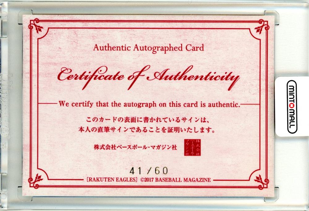 2017 BBM 東北楽天ゴールデンイーグルス 釜田佳直 直筆サインカード【41/60】