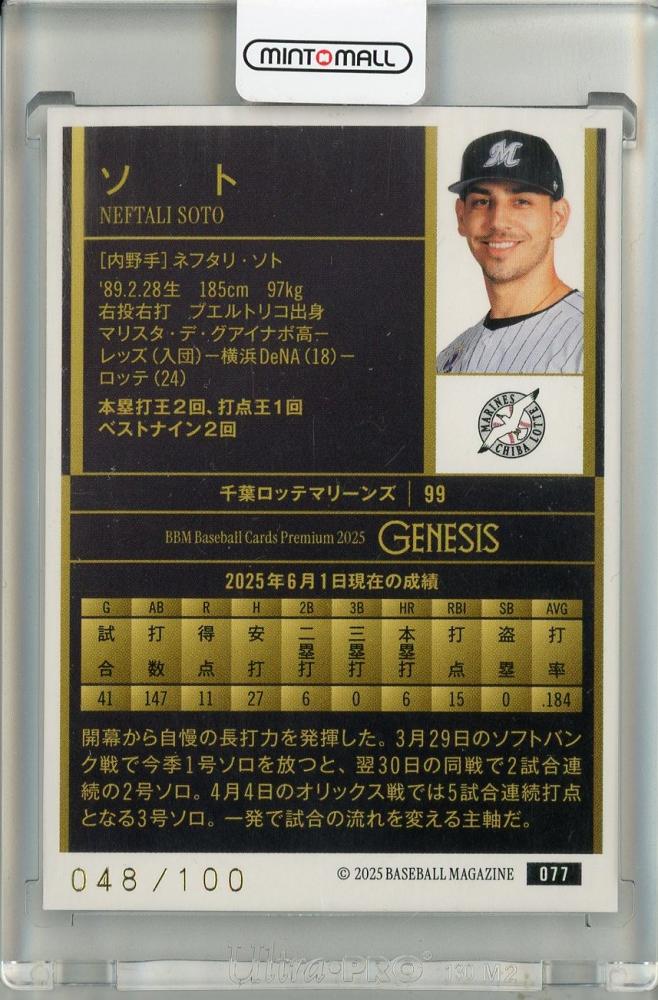 2025 BBM GENESIS ネフタリ・ソト コバルトブルー箔版【048/100】 千葉ロッテマリーンズ