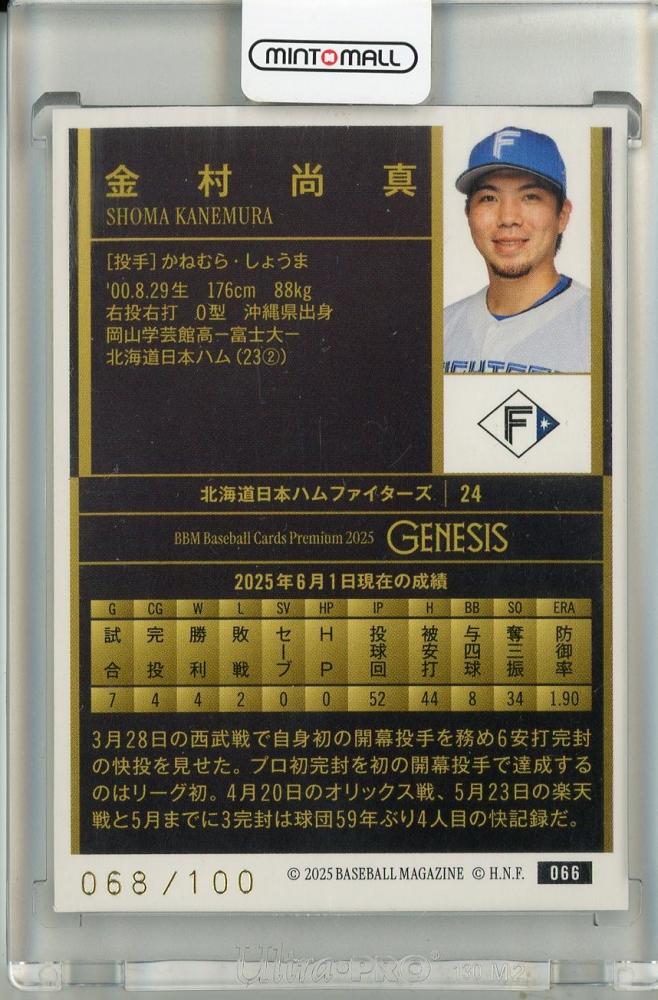 2025 BBM GENESIS 金村尚真 コバルトブルー箔版【068/100】 北海道日本ハムファイターズ