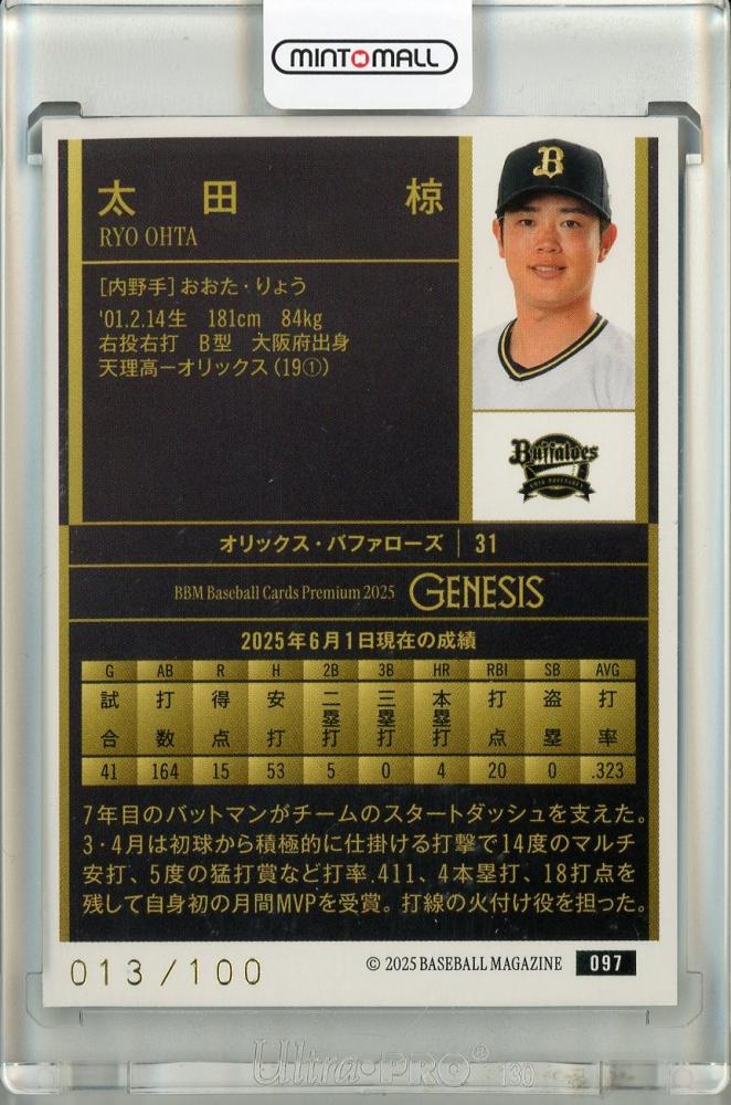 2025 BBM GENESIS 太田椋 コバルトブルー箔版【013/100】 オリックス・バファローズ