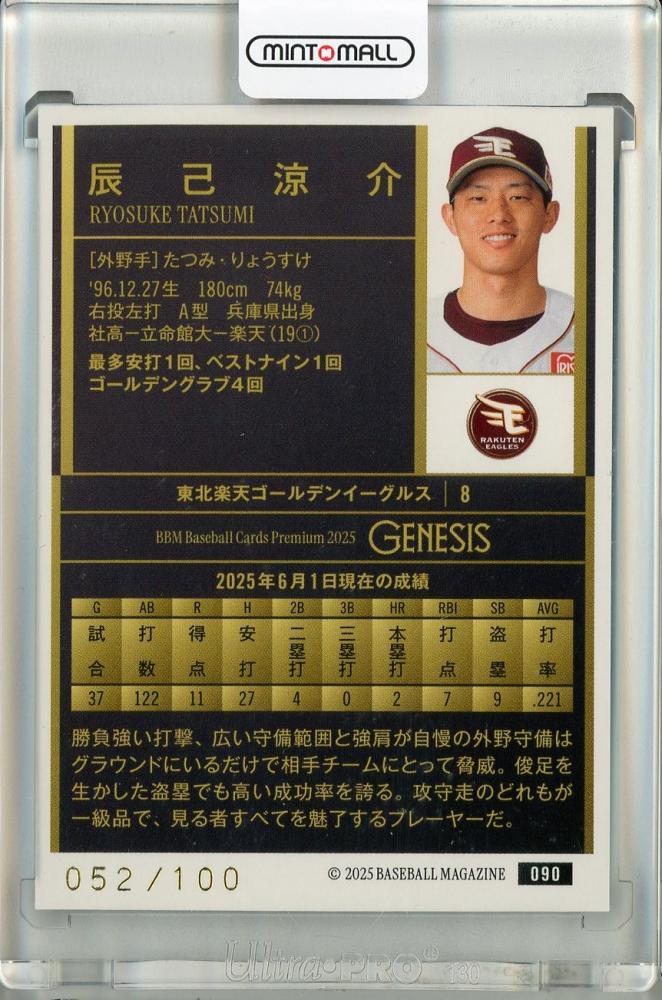 2025 BBM GENESIS 辰巳涼介 コバルトブルー箔版【052/100】 東北楽天ゴールデンイーグルス