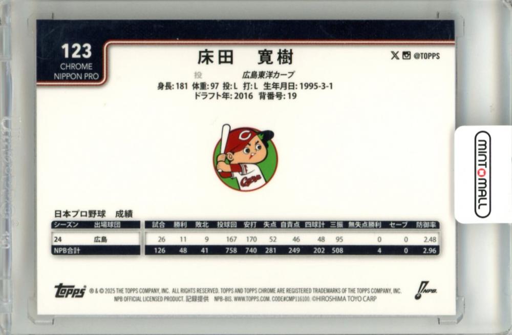 2025 TOPPS CHROME NPB 床田寛樹 #123 Base Red Refractor Parallel【3/5】 広島