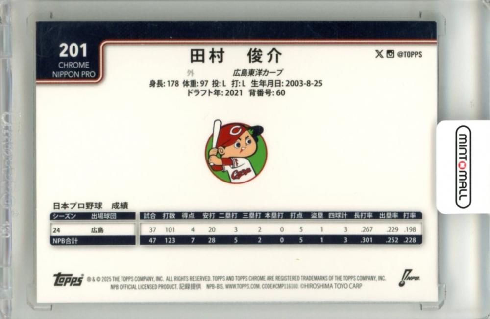 2025 TOPPS CHROME NPB 田村俊介 #201 Base Gold Shimmer Refractor Parallel【03/50】 広島