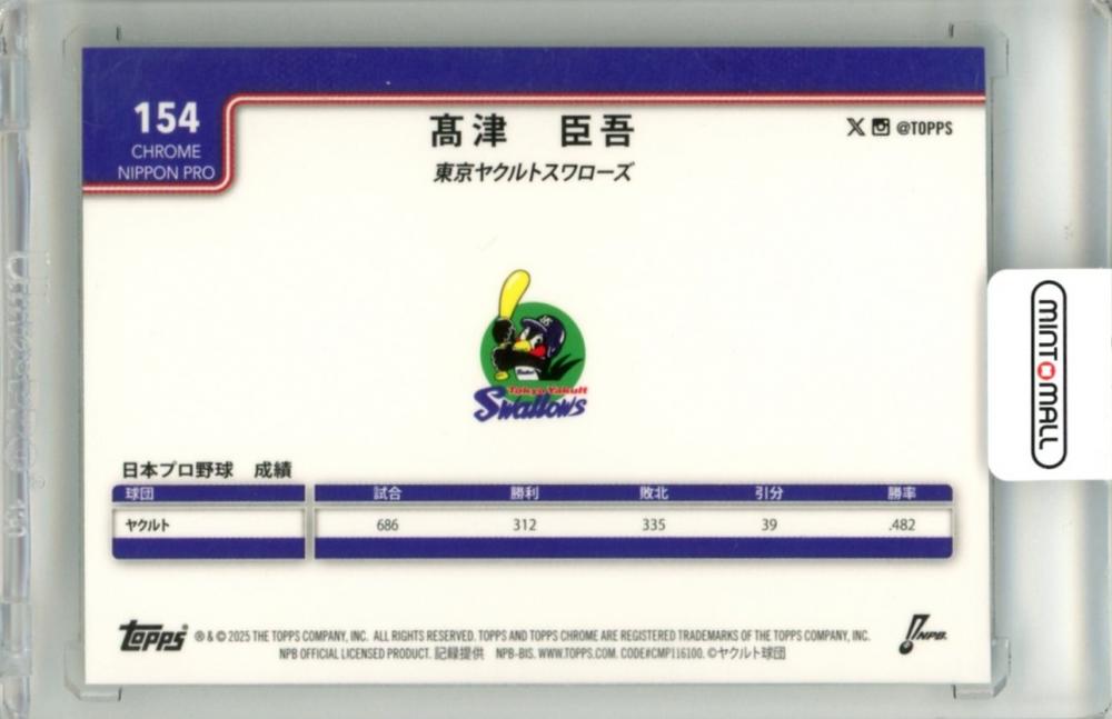2025 TOPPS CHROME NPB 高津臣吾 #154 Base Aqua Refractor Parallel【059/199】 ヤクルト