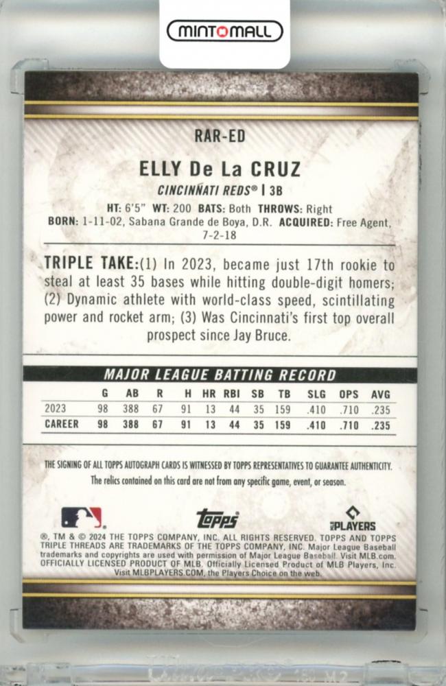 2024 Topps Triple Threads Elly De La Cruz #RAR-ED Rookie Autographed Relic Card【31/75】 Reds