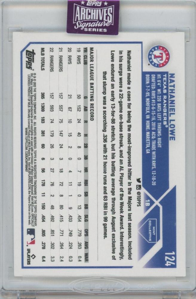 2025 TOPPS Archives Signature Series Active(2023 TOPPS #124) / NATHANIEL LOWE(Texas Rangers) 【1/1】