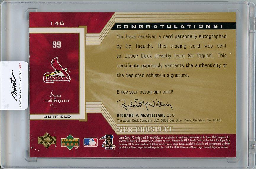 【若干白欠けあり】2002 UPPER DECK SPx Prospect So Taguchi Autograph