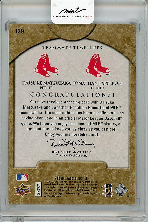 2009 UPPER DECK Ballpark Collection Daisuke Matsuzaka & Jonathan Papelbon Dual Swatch Memorabilia【016/200】