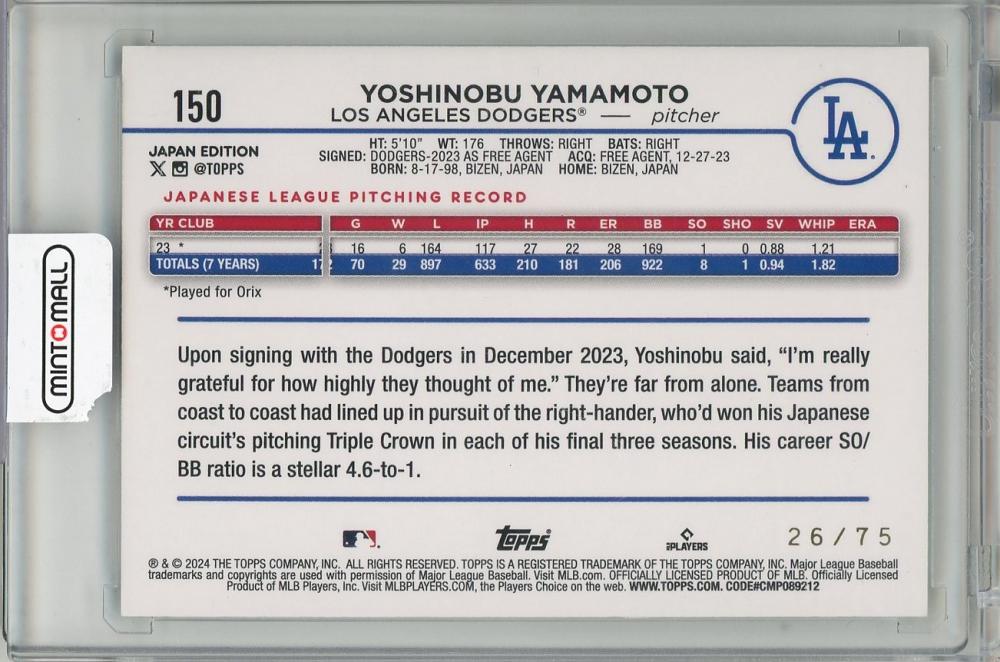 2024 TOPPS Japan Edition Yoshinobu Yamamoto #150【26/75】 Los Angeles Dodgers