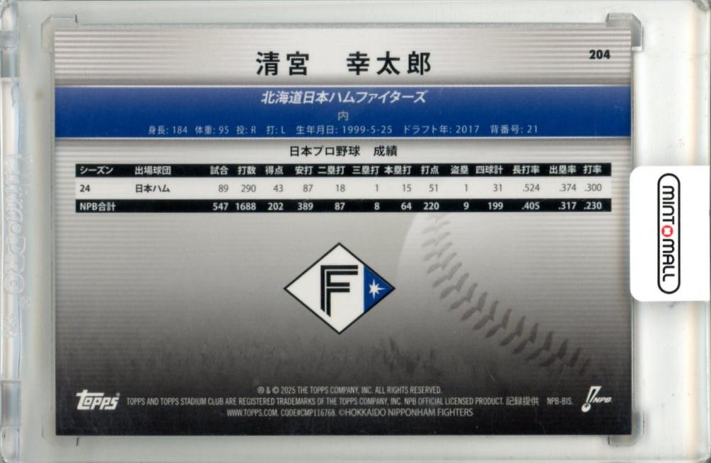 2025 TOPPS NPB STADIUM CLUB 清宮幸太郎 #204 Base Orange Parallel【11/25】 日本ハム