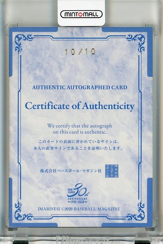 BBM 千葉ロッテマリーンズ 2020 横山陸人 ルーキー直筆サインカード【10/10】