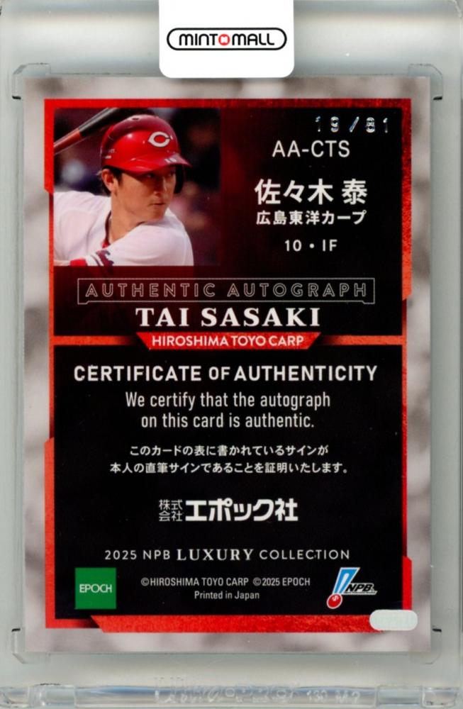 2025 EPOCH NPB プロ野球カード LUXURY COLLECTION 佐々木泰 #AA-CTS AUTHENTIC AUTOGRAPH 直筆サインカード ベース版【19/81】 広島