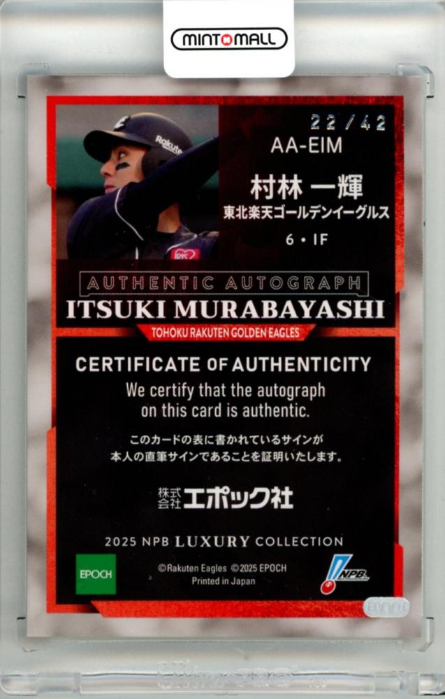 2025 EPOCH NPB プロ野球カード LUXURY COLLECTION 村林一輝 #AA-EIM AUTHENTIC AUTOGRAPH 直筆サインカード ベース版【22/42】 楽天