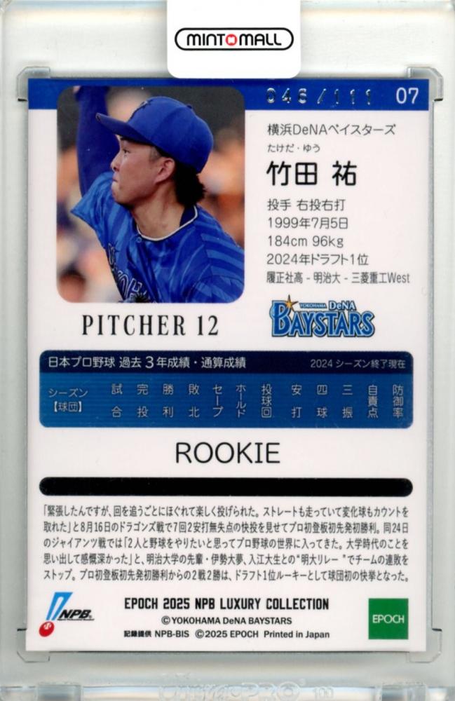 2025 EPOCH NPB プロ野球カード LUXURY COLLECTION 竹田祐 #07 レギュラーカード ベース版【046/111】 横浜