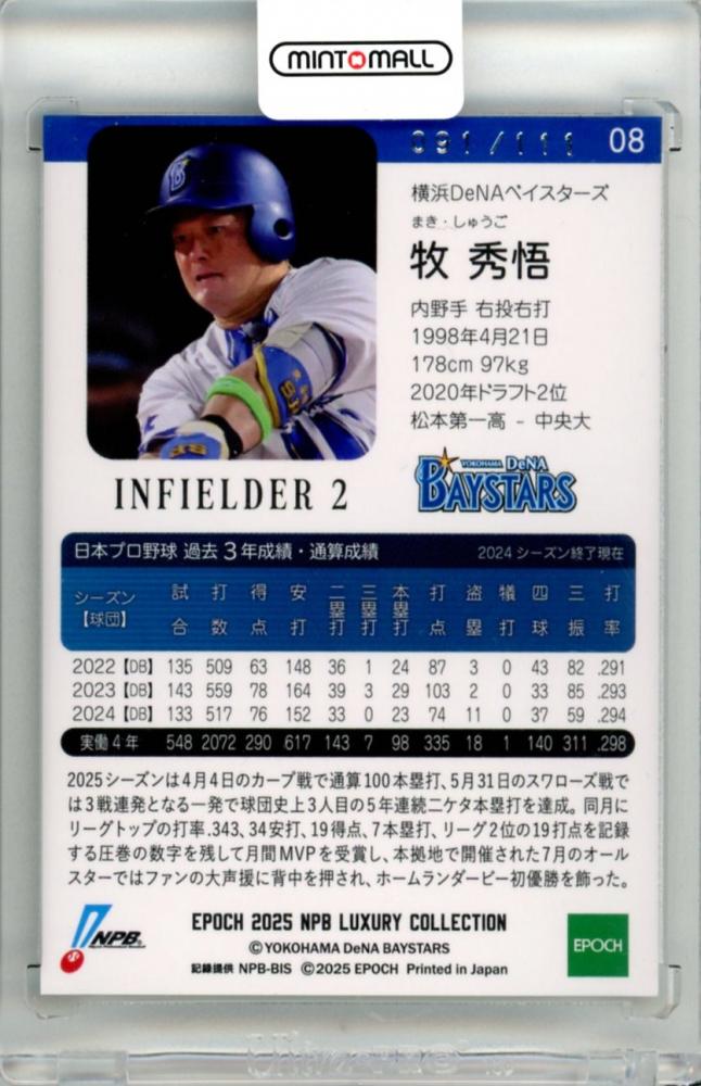 2025 EPOCH NPB プロ野球カード LUXURY COLLECTION 牧秀悟 #08 レギュラーカード ベース版【091/111】 横浜