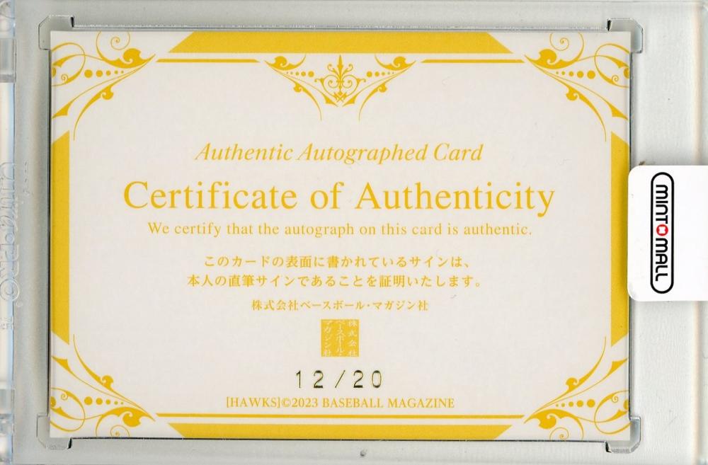 2023 BBM 福岡ソフトバンクホークス 生海 直筆サインカード【12/20】