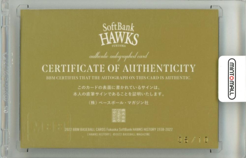 2022 BBM 福岡ソフトバンクホークス ヒストリー 1938-2022 東浜巨 直筆サインカード【06/10】