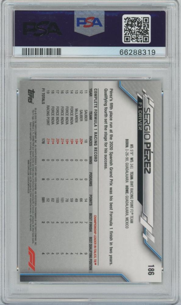 2020 TOPPS Chrome Formula 1 70th Anniversary Gold Refractors #186 / SERGIO PEREZ(BWT Racing Point F1 Team) [PSA10/GEM MINT]