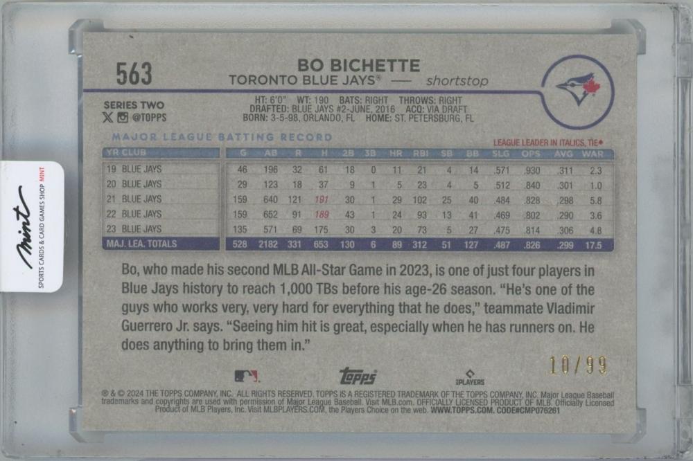 2024 TOPPS Vintage Stock #563 / BO BICHETTE(Toronto Blue Jays) 【10/99】