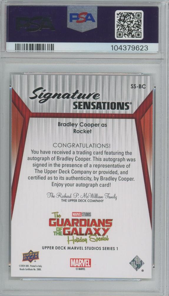 2024 Marver Studios Series1 Bradley Cooper as Rocket Autographs#SS-BC【PSA9】 Guardians of the Galaxy