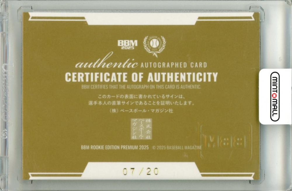2025 BBM ルーキーエディションプレミアム 坂口翔颯 直筆サインカード 横版【07/20】 横浜