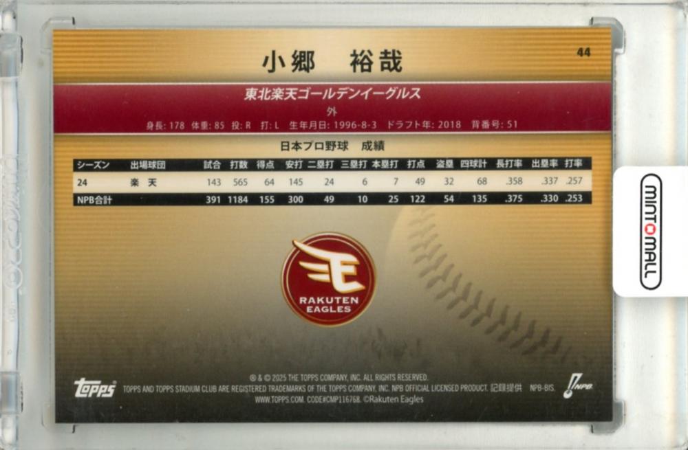 2025 TOPPS NPB STADIUM CLUB 小郷裕哉 #44 Base Gold Parallel【17/50】 楽天